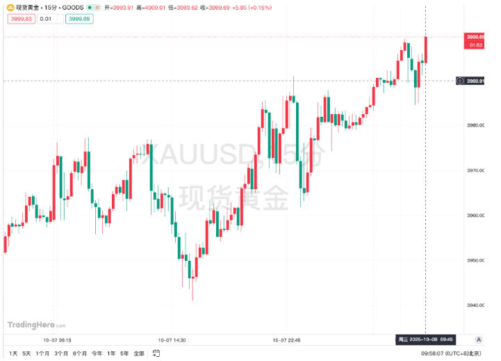 现货黄金突破4000美元/盎司大关,续创新高,年内大涨近1400美元/盎司,涨幅超52%。现货白银逼近48美元/盎司,创2011年5月份以来新高。