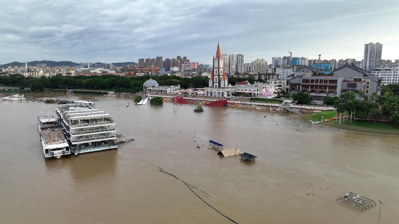 10月5日,受台风“麦德姆”影响,海南文昌市铺前镇发生海水倒灌,多条临海街道被淹,当地居民称灾情严重程度堪比2014年超强台风“威马逊”。