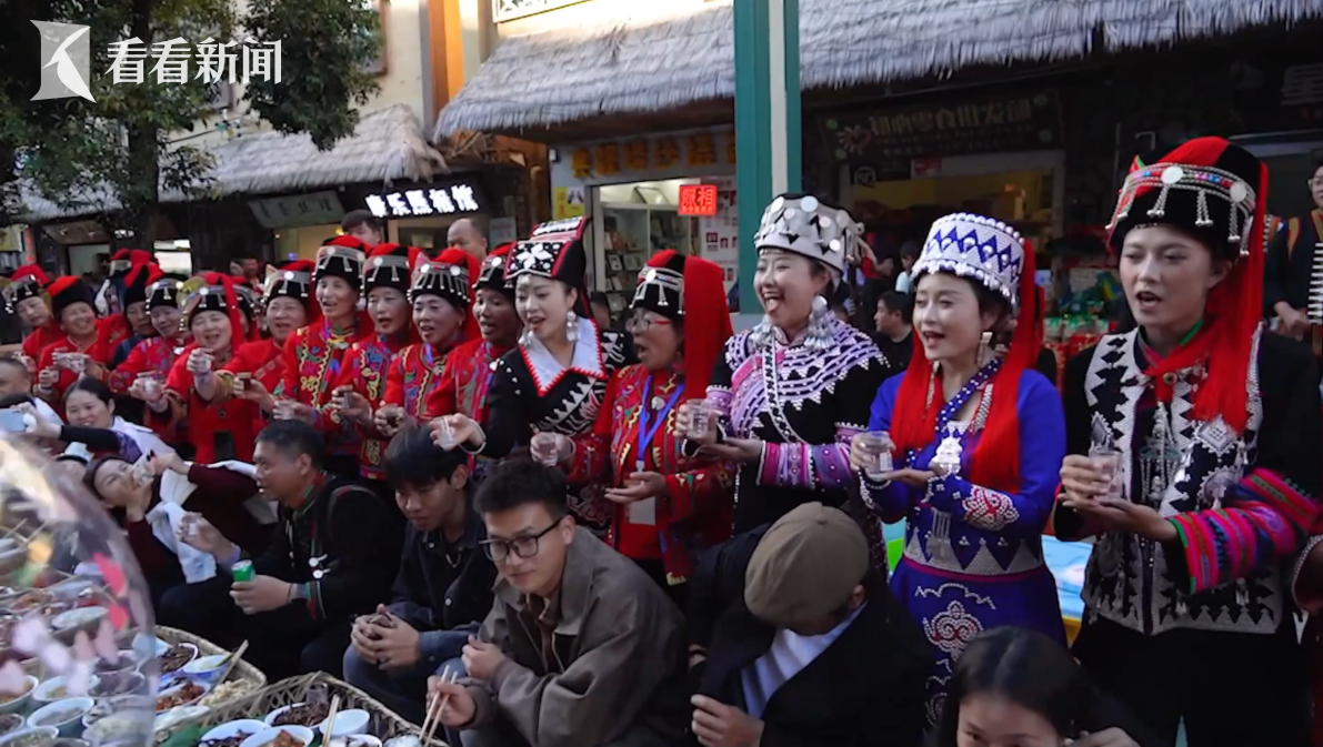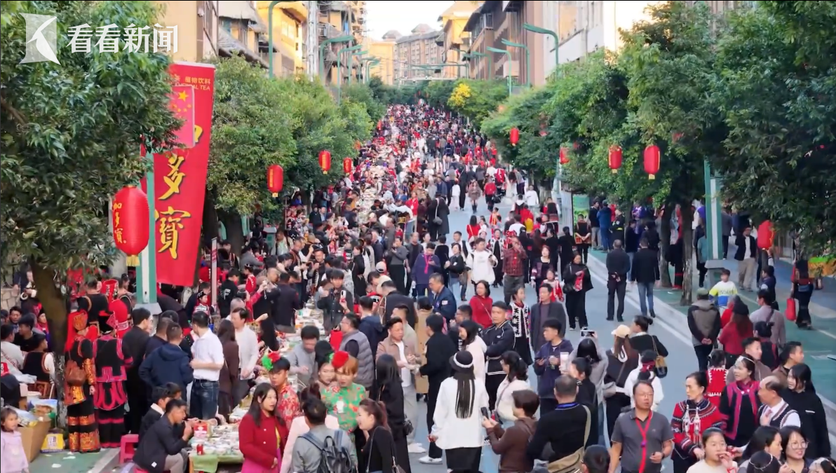 随着哈尼族 “龙头” (村里德高望重的老人)一声祈福令下,绵延近5公里的3000桌长街古宴在云南省红河州绿春县正式开席,万人同席、举杯共饮的壮观场景,吸引了众多游客和当地群众参与。