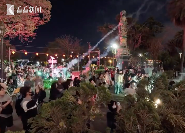 2月14日当晚,高雄左营区莲池潭景区内举行烟火和无人机表演,吸引了大批民众蜂拥而来。未料烟花升空后,不断朝向地面的人群射来,人群瞬间四散闪避。