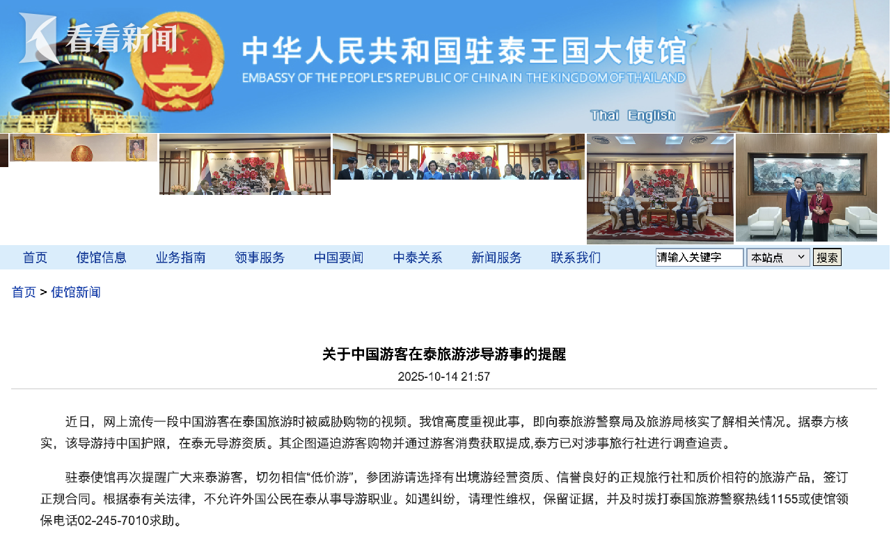 中国驻泰使馆昨天深夜也紧急提醒,别信当地所谓“低价游”,参团一定要选有资质、口碑好的正规旅行社,签订正规合同。如果遇到纠纷别慌,冷静维权、留好证据,直接打泰国旅游警察热线或使馆领保电话求助。