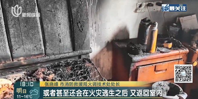 我们从火灾中也发现一些老人没有第一时间报警,没有第一时间疏散逃生,而是去扑救火灾。或者甚至还会在火灾逃生之后,又返回室内,重新寻找财物等等。