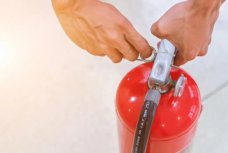 🔓注意拔保险销的时候,不要同时握住上下两个手柄,要提起下半部分,这样就很容易拔出来。保险销拔掉后,灭火器就可以正常使用了。