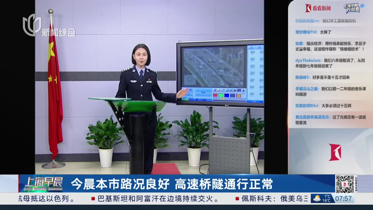 交通连线:今晨本市路况良好 高速桥隧通行正常