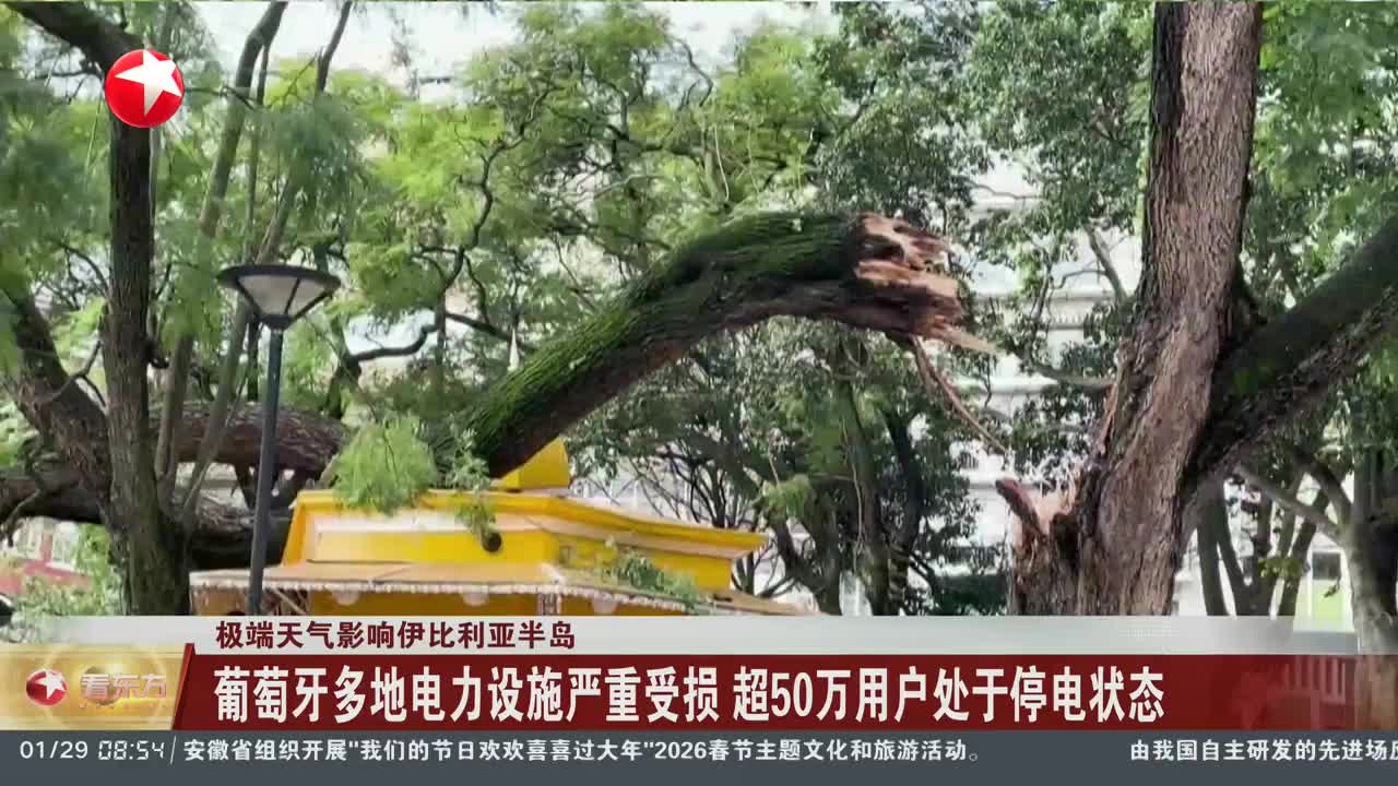 极端天气影响伊比利亚半岛 葡萄牙多地电力设施严重受损 超50万用户处于停电状态