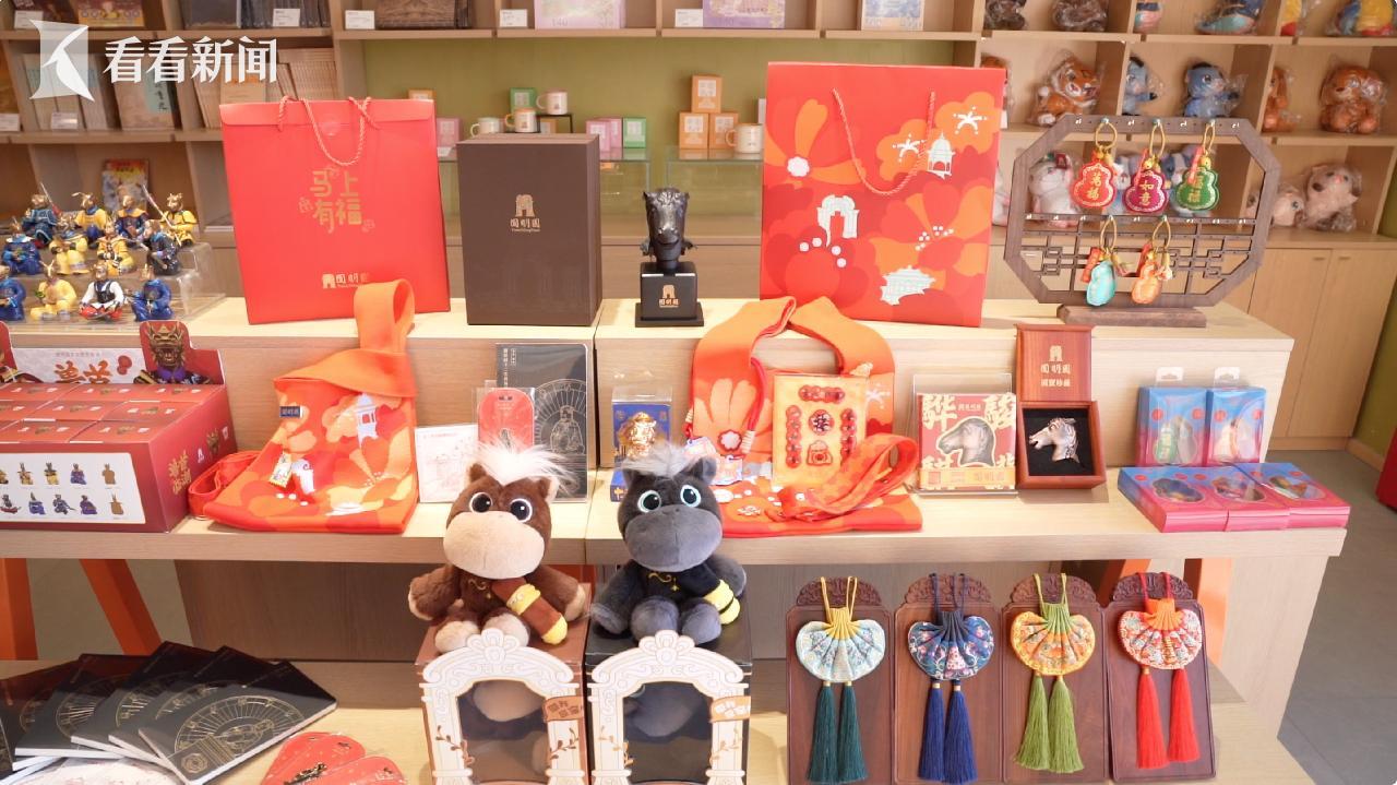 现场还有新春游园福袋、马首毛绒公仔等精美文创产品,融入大水法、黄花阵中心亭等圆明园经典元素,让游客在参观时了解圆明园的传统文化。