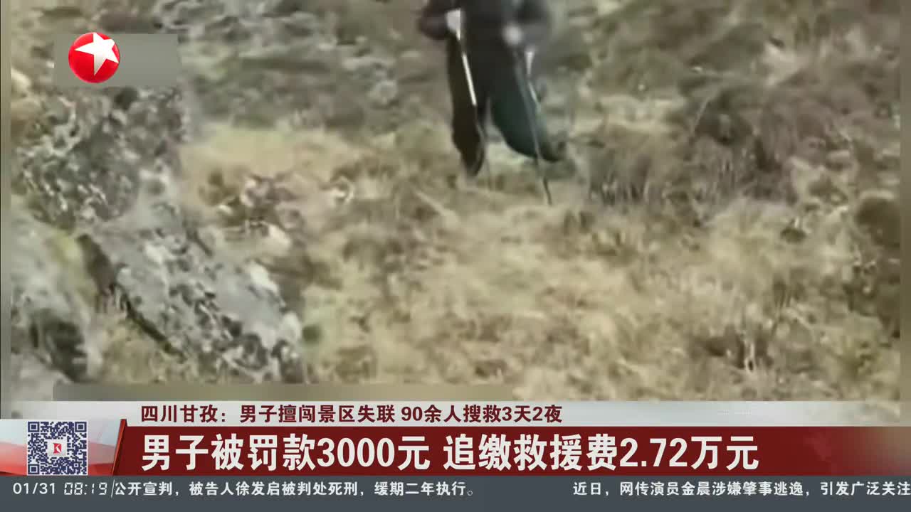 四川甘孜:男子擅闯景区失联 90余人搜救3天2夜 男子被罚款3000元 追缴救援费2.72万元