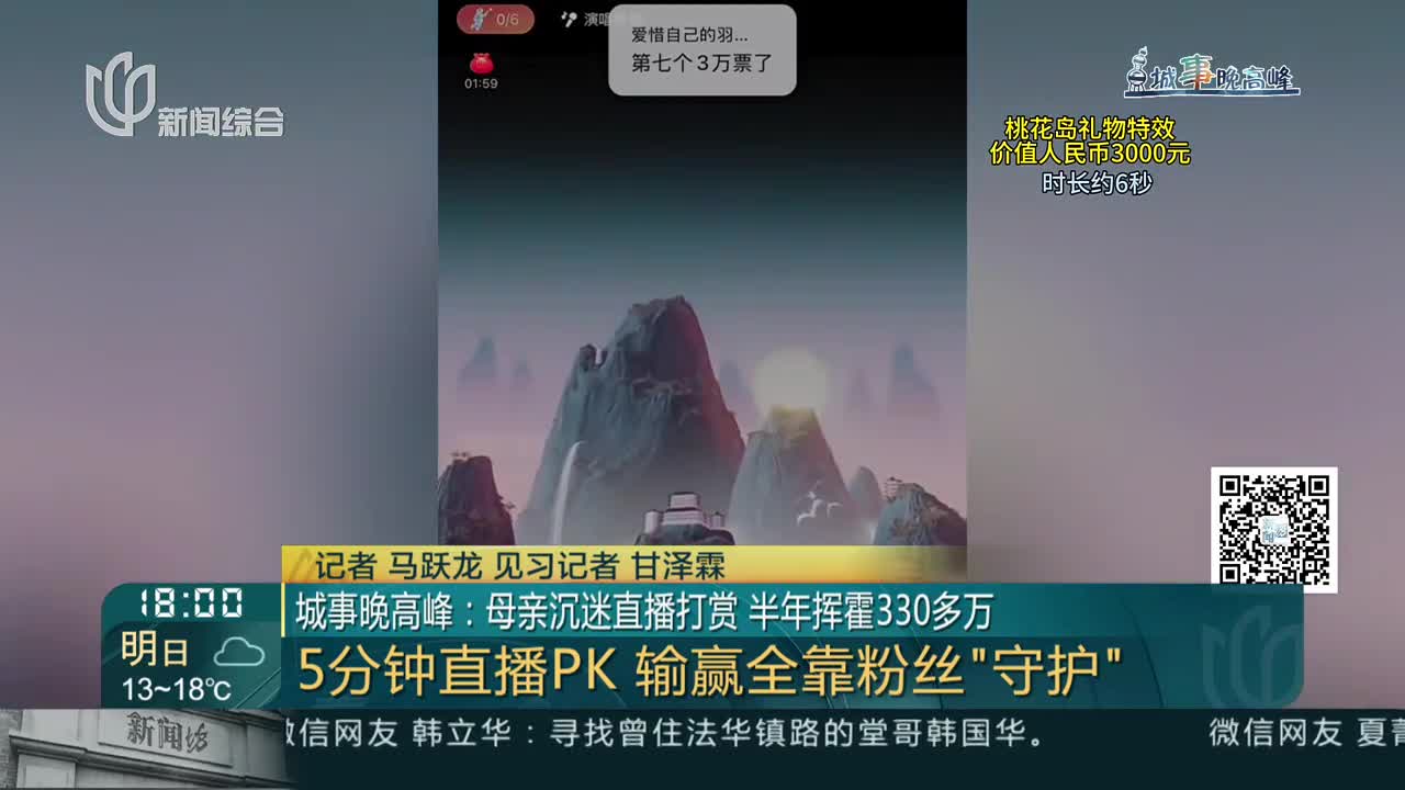 城事晚高峰:母亲沉迷直播打赏 半年挥霍330多万 5分钟直播PK 输赢全靠粉丝“守护”