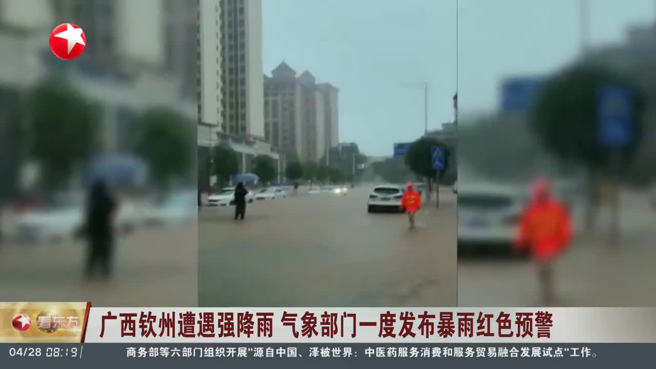 广西钦州遭遇强降雨 气象部门一度发布暴雨红色预警 主城区多个路段出现严重积水 当地启动防汛三级应急响应