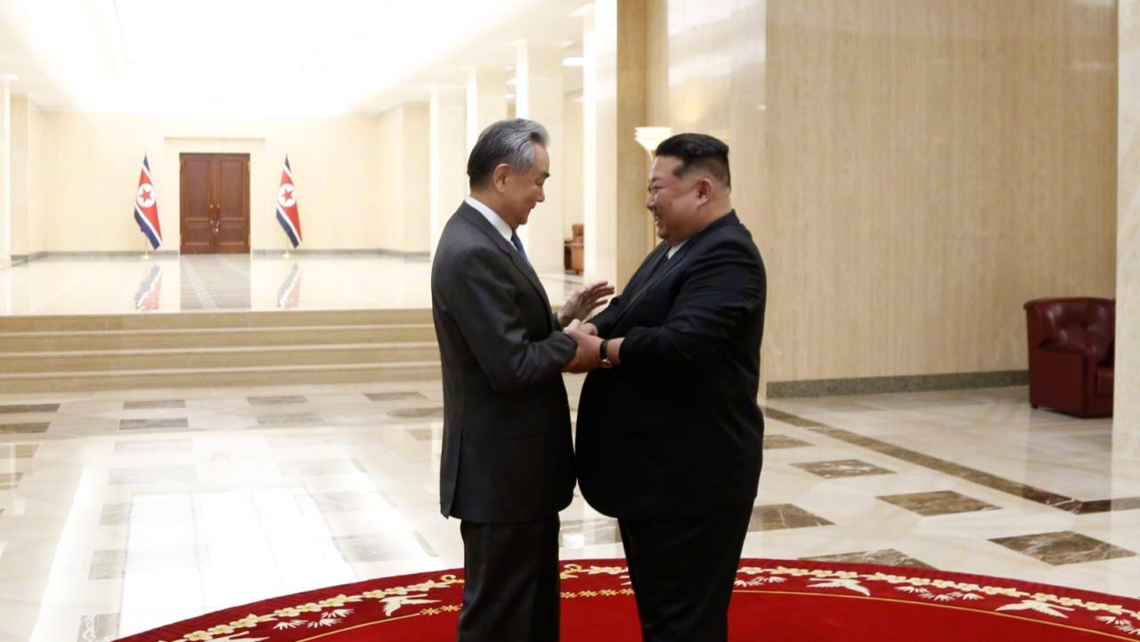 现场画面:朝鲜最高领导人金正恩会见王毅