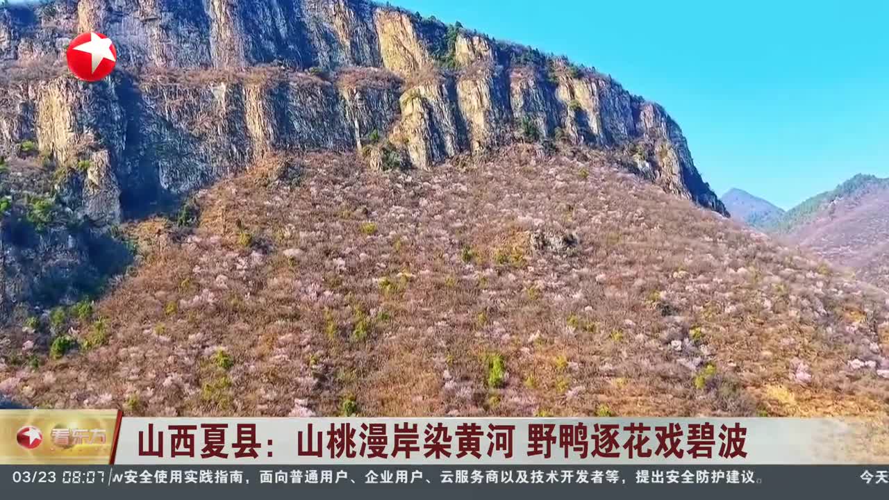 山西夏县:山桃漫岸染黄河 野鸭逐花戏碧波