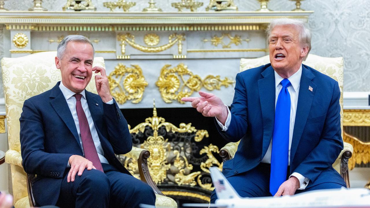 当卡尼说到“在许多方面中最重要的是”时,特朗普趁其停顿插嘴道:“以及加拿大和美国的合并交易。”卡尼随即澄清,“不对,我想说的不是这个”。