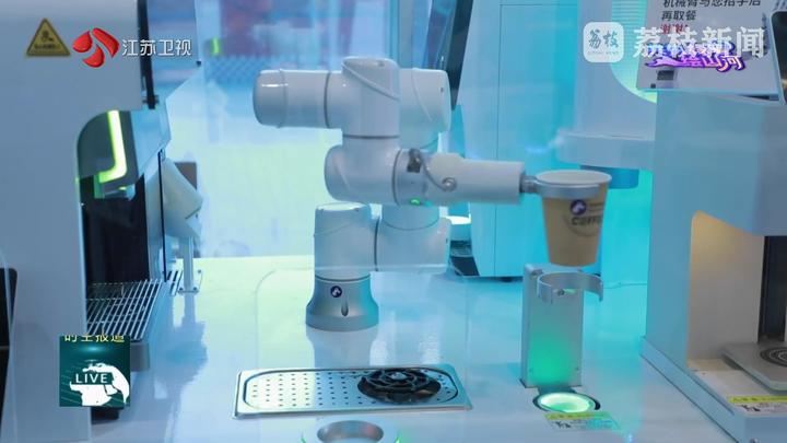 吴浩然说:“我现在就来到了全球首家机器人6S店,这里就像一个大型的‘机器人秀场’,检验着哪些机器人最受市场欢迎。就在我说话的功夫,一杯由机器人特制的‘长三角遇上大湾区’特调咖啡已经做好了。”