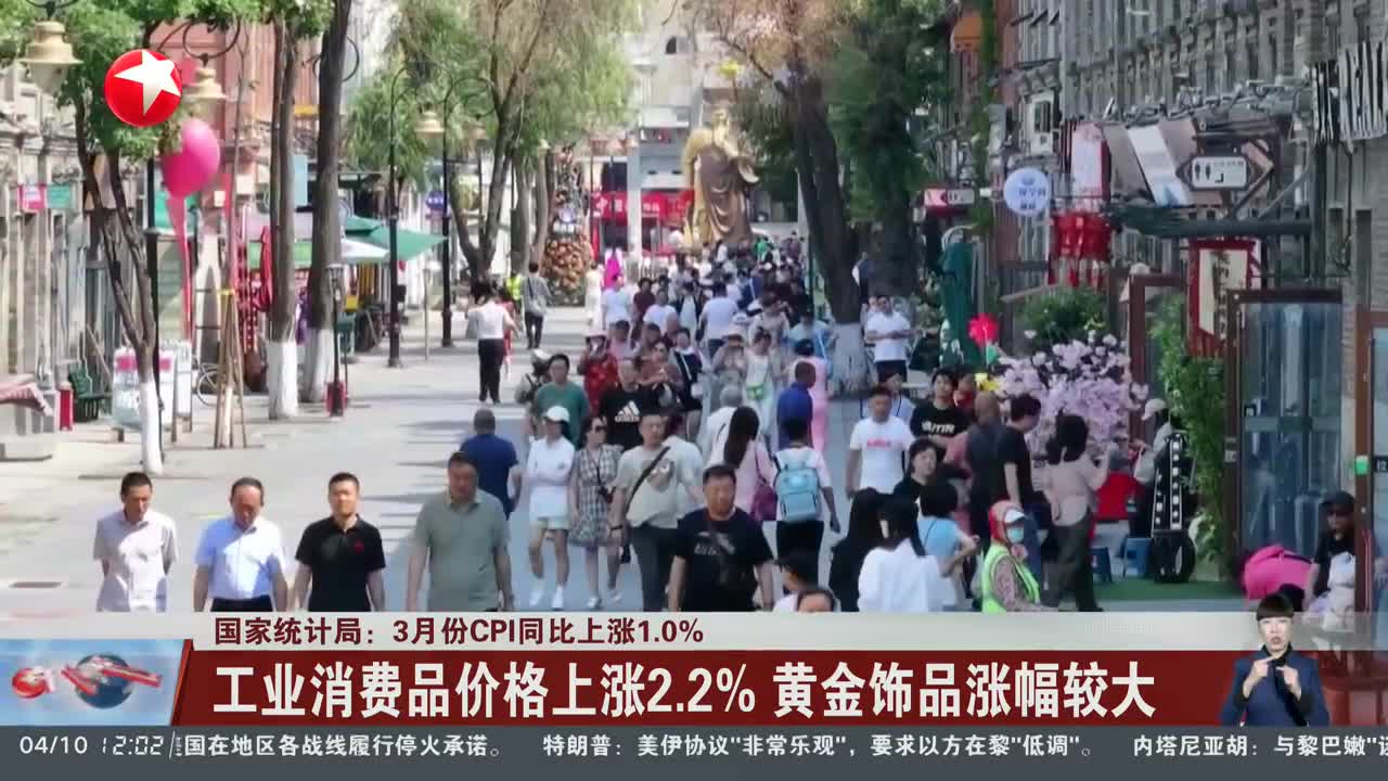 国家统计局:3月份CPI同比上涨1.0% 工业消费品价格上涨2.2% 黄金饰品涨幅较大