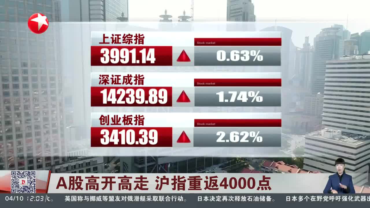 A股高开高走 沪指重返4000点 超4400只股票上涨