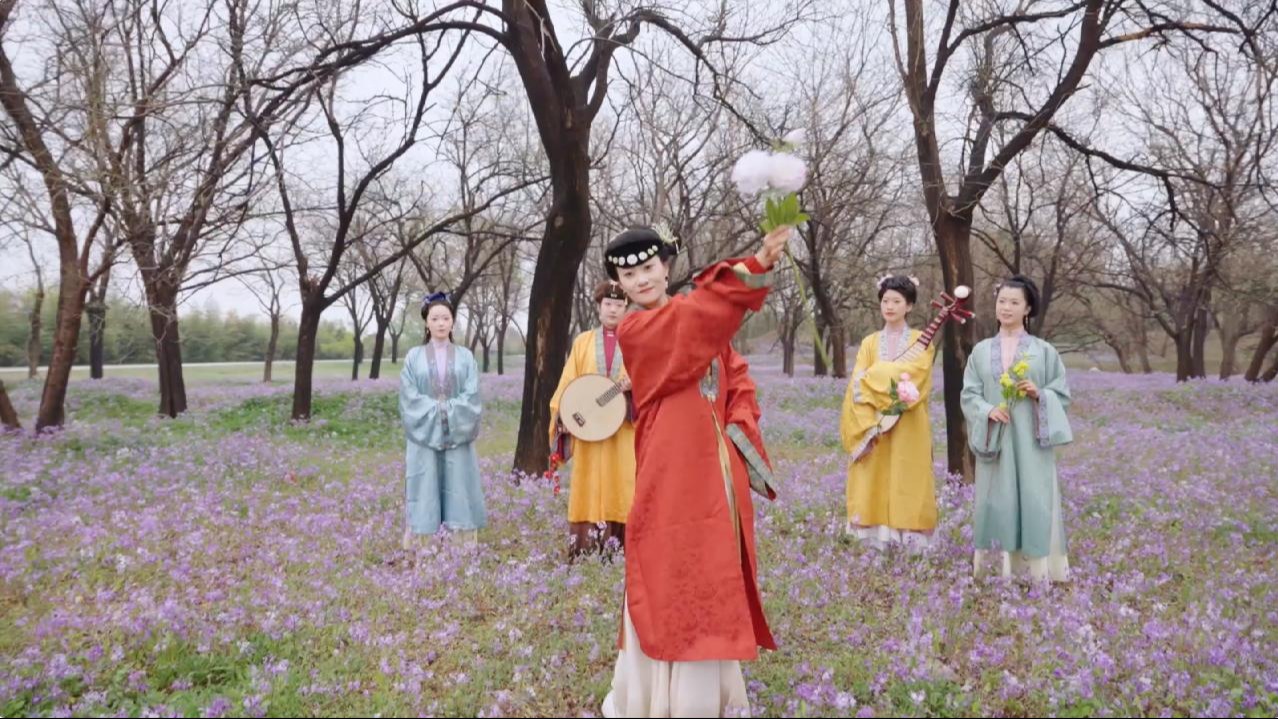 永清路晚樱盛放 粉樱配银杏绘就春日生态画卷