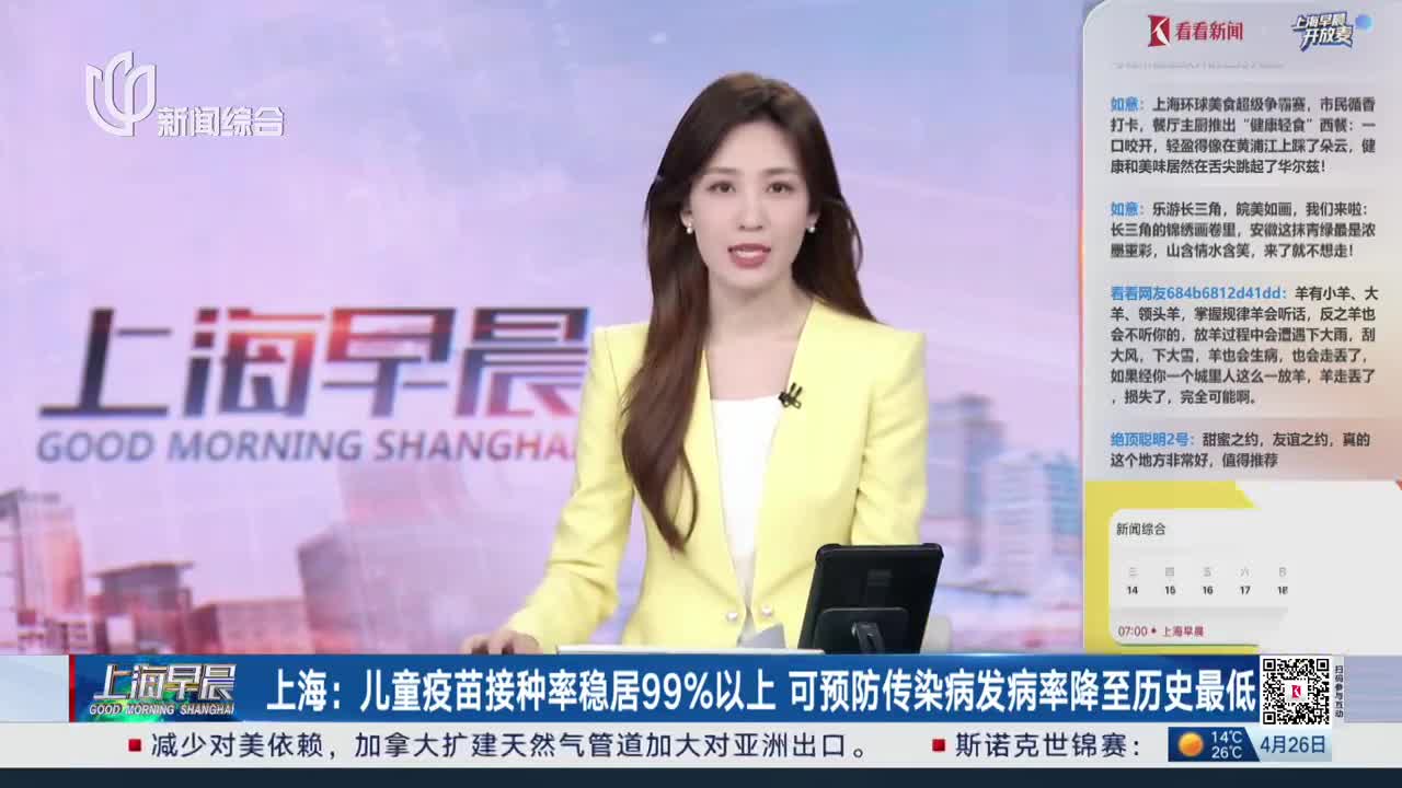 长三角日历 上海:儿童疫苗接种率连续多年99%以上