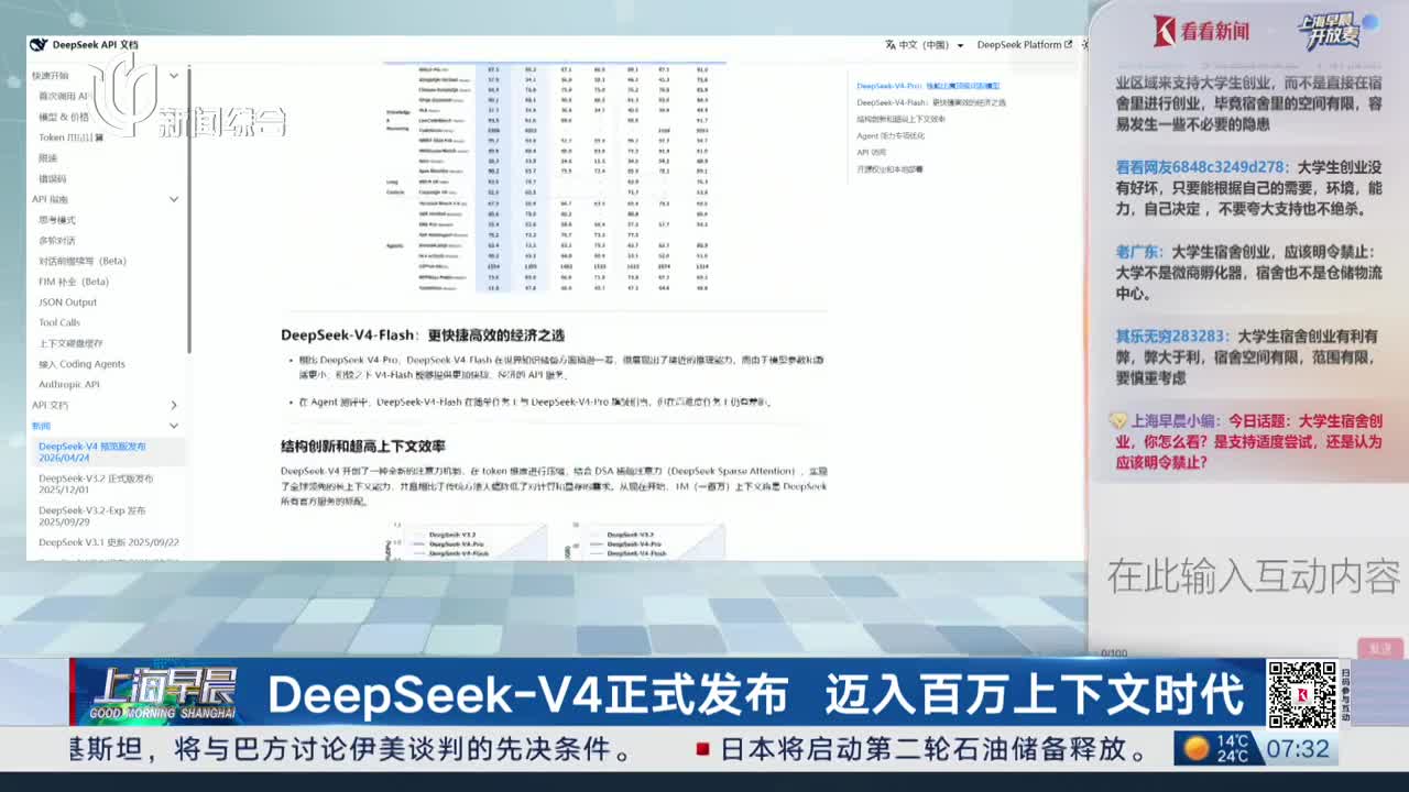 DeepSeek-V4正式发布 迈入百万上下文时代