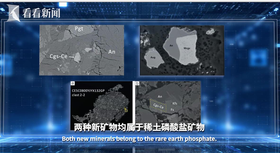 4月24日,在第十一个“中国航天日”主场活动启动仪式上,国家航天局对外发布嫦娥五号月球样品最新研究成果。中国科学家在嫦娥五号月球样品中,发现两种月球新矿物,均获国际矿物学协会新矿物命名及分类委员会批准,分别命名为镁嫦娥石与铈嫦娥石。这是继2022年嫦娥石之后,中国科学家发现的第二和第三种月球新矿物,也是全世界在返回月壤中发现的第七和第八种月球新矿物。