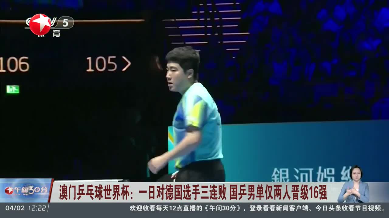 澳门乒乓球世界杯:一日对德国选手三连败 国乒男单仅两人晋级16强
