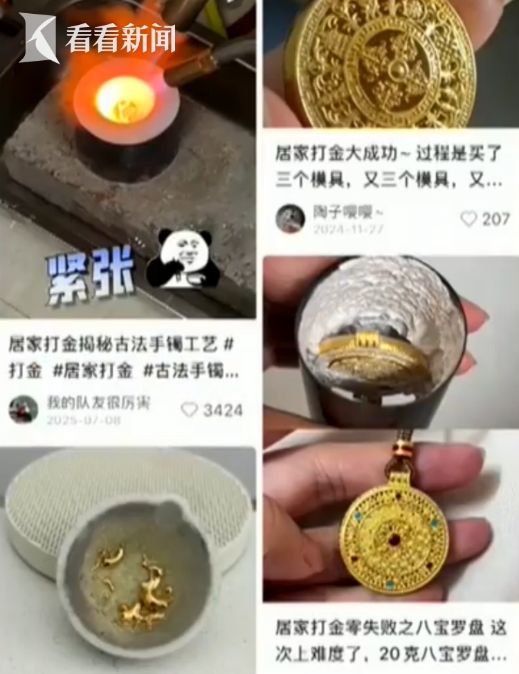 有网友看了视频之后就买来了坩埚钳、喷火头、油泥等炼金工具,化身打金师傅开始尝试居家打金,这种被称为省钱又有趣的居家打金真的靠谱吗?我们来看总台中国之声记者的报道。