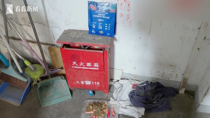 记者来到了泗塘一村95号3楼,叫阿旺的宠物狗并没有在楼道里。走廊里,两块薄薄的棉布,就是阿旺的家,旁边一个简易的塑料盒里,放着好心人送来的狗粮和火腿肠。