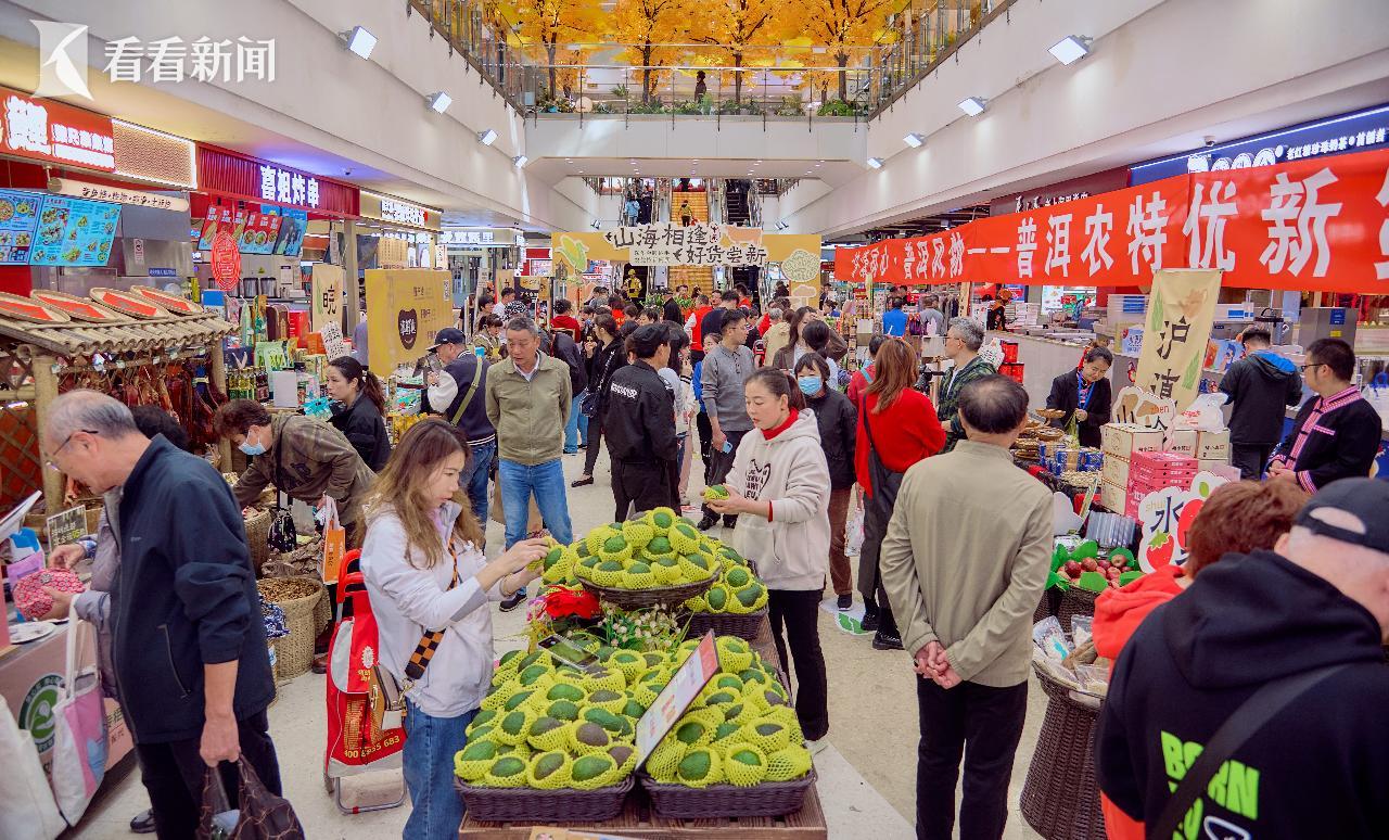 云南的咖啡、牛油果,安徽的玉米和刀板香,新疆的果干,正值双11,一场跨越山海的风味旅程热闹开场。11月11日至11月17日,“山海相逢·联华金牌挑手农优特新货展”在上海百联中环B1中庭举办。