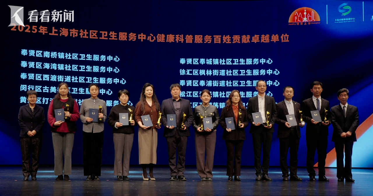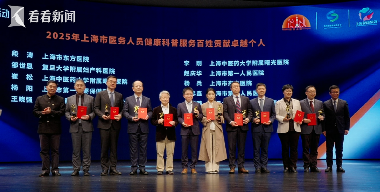 12月11日,2025年上海市健康科普服务百姓贡献榜发布。华山医院、中山医院、市一医院等十家单位,东方医院、同仁医院、中山医院青浦分院等十家单位,奉贤区南桥镇、海湾镇、西渡街道社区卫生服务中心等十家单位,分别获评全市、区级和社区卫生服务中心卓越单位,东方医院段涛、妇产科医院邹世恩、曙光医院崔松等十人获评卓越个人。
