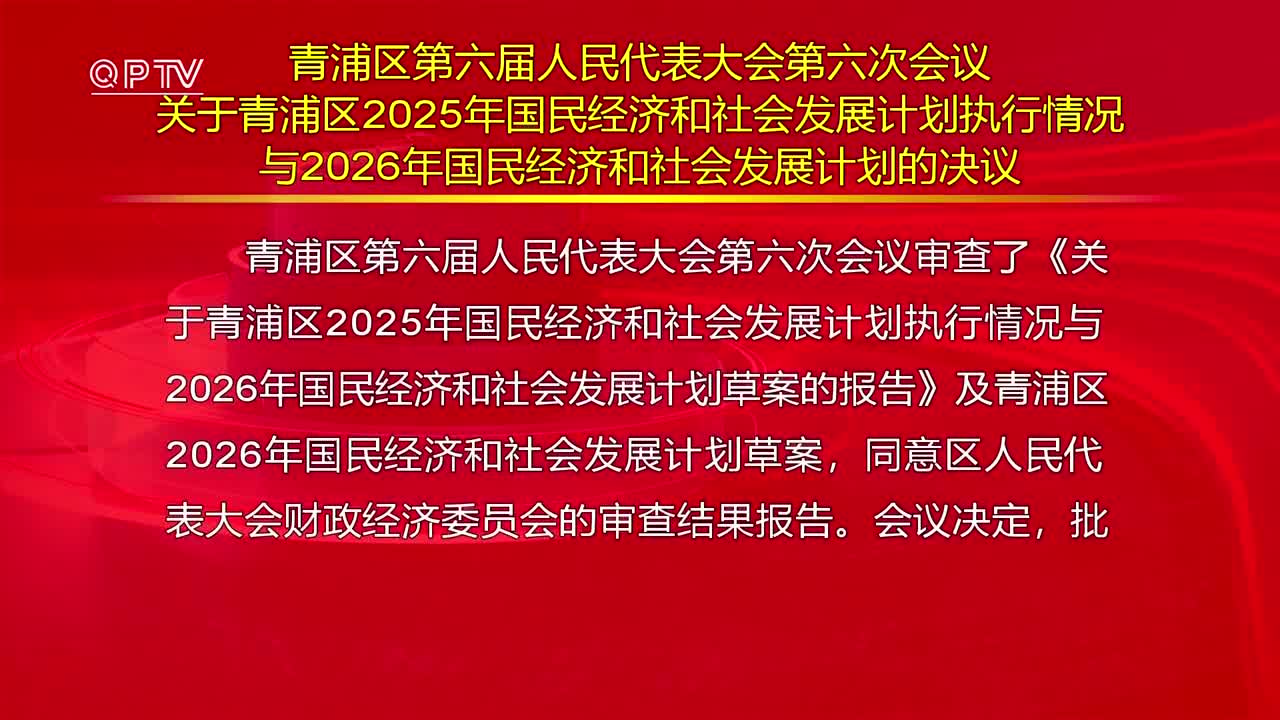 青浦区第六届人民代表大会第六次会议关于青浦区2025年国民经济和社会发展计划执行情况与2026年国民经济和社会发展计划的决议