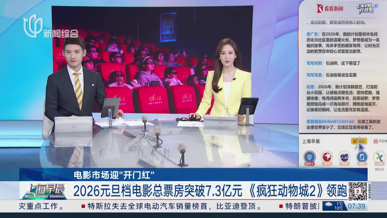 电影市场迎“开门红”2026元旦档电影总票房突破7.3亿元《疯狂动物城2》领跑