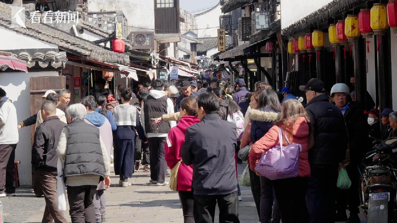 青石板路映红灯,江南水乡年味浓。春节期间,位于上海浦东的新场古镇成为市民游客打卡的热门地,初一到初三日均客流超6万。