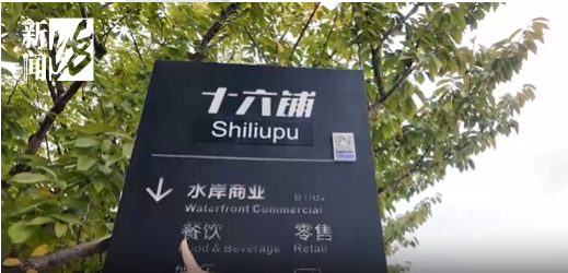特别是在十六铺水岸商业广场附近的外滩亲水平台,坊记在指示牌的正面看到,水岸商业应该一路向前(箭头朝上)。