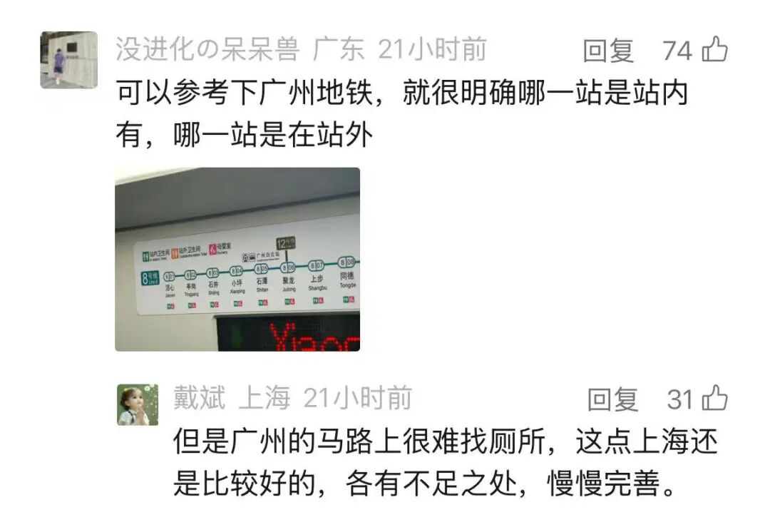 街头采访中,大部分受访者为地铁厕所的干净整洁点赞,但是说到指引标识,就有不一样的声音,吐槽的声音主要集中在首次来沪的外地游客。地铁方面回应,站点公厕导向标识,主要是结合国标参数及站点情况综合布设。