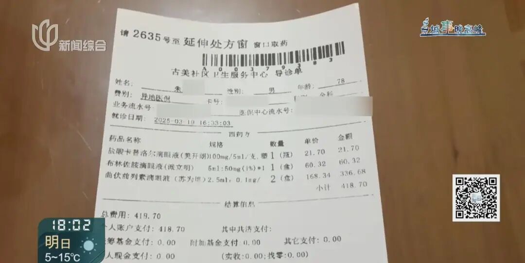 闵行区卫健委称,异地医保人员延伸处方工作,涉及社区医院、区级医院、市级医院等多个环节的诊疗数据采集。目前,已协调古美社区医院通过临时采购路径,将相关药品引入社区医院药库,满足朱老伯的配药需求。