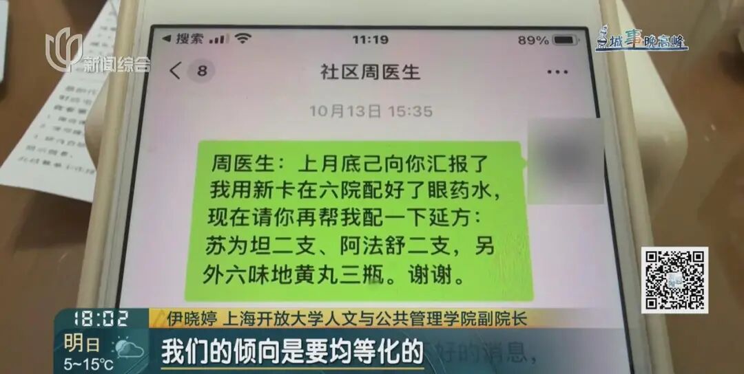 上海市民为了配一个延伸药,就要去三甲医院挤独木桥,国家再三讲,说要把医疗服下沉到社区医院,来解决三甲医院就医难的这个矛盾。我们就按照这个政策来,现在是不是逼着我们都要去挤那个独木桥呢?家庭医生开那延伸处方这个方便事情,家门口就能配药,这个政策为什么就实行不了?这个实事为什么就不能做到底呢?