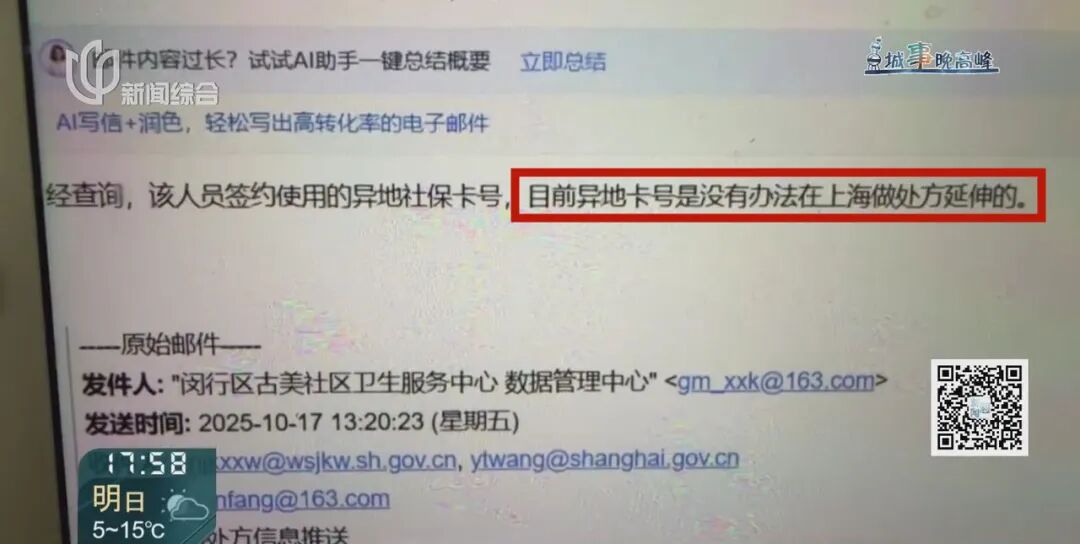 上海健康信息网运营组随后邮件回复医生,确认像朱老伯这种情况,目前的确不能享受延伸处方服务。
