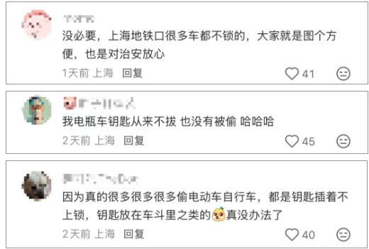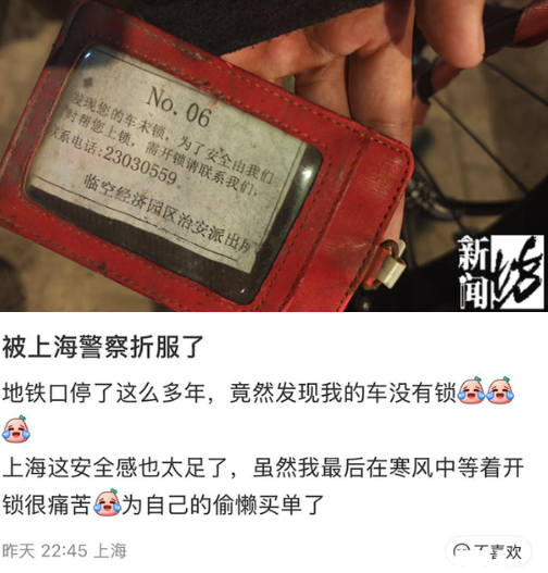 “上海地铁口很多车都不锁