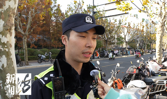 记者采访时,民警就刚好找到一辆未上锁的电瓶车,“您的电瓶车钥匙没有拔,我们帮你先收起来了好吧,帮您先上好锁,万一被人家推掉就不好了,给你留个牌子在上面,电话号码留在上面。”
