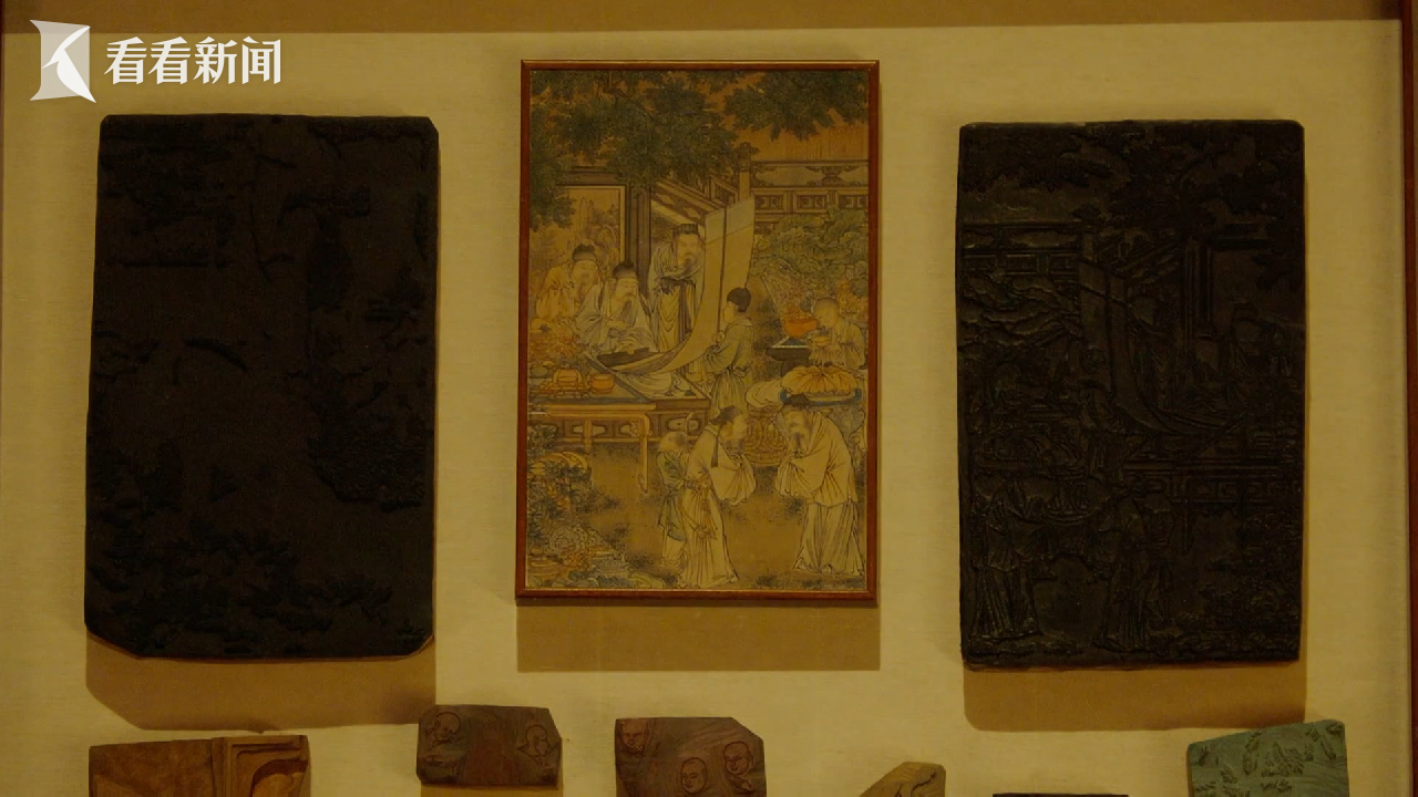 文物要活起来,艺术要走近大众,传承,有时候也需要过硬的技术。这次展览专门留了一个板块,来呈现非物质文化遗产、朵云轩的木版水印技艺。任伯年的群仙祝寿图,是有史以来尺幅最大的木板水印作品,毕8年之功精心雕刻,逼真再现原作。而齐白石的《荷花蜻蜓图》真迹与木版水印复制品并列,几乎难辨真假。