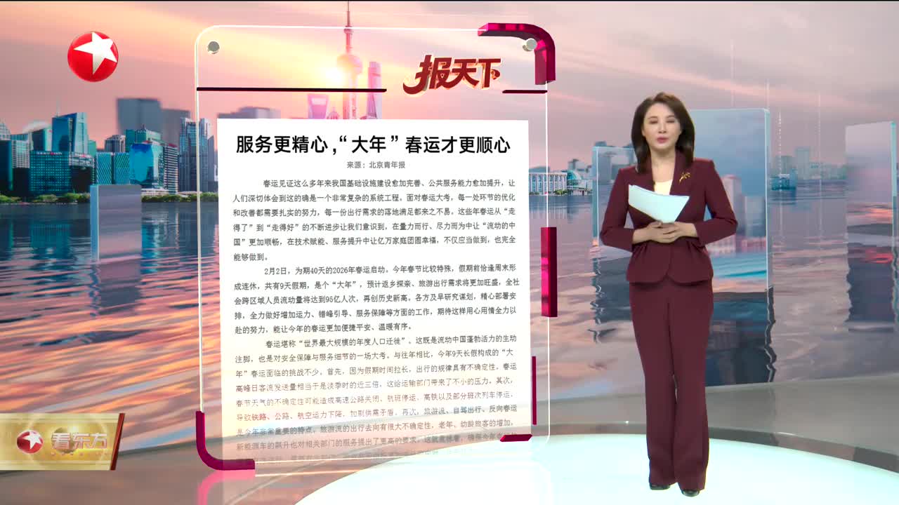 2026年春运今日开启,全社会跨区域人员流动量预计将达95亿人次,创历史新高。今年春运服务有何新举措?出行需要关注哪些细节?这份实用指南请收好。