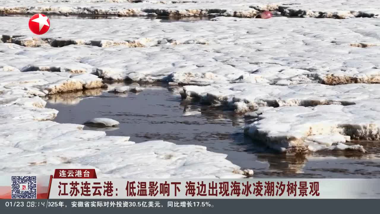 江苏连云港:低温影响下 海边出现海冰凌潮汐树景观