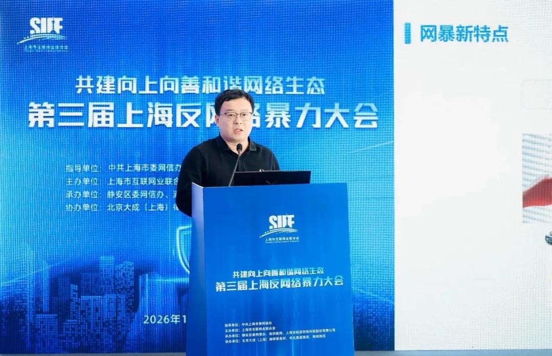 大会上,由上海市互联网业联合会、澎湃新闻和大成(上海)律师事务所联合建立上海反网暴平台,为网络暴力受害者提供舆论支持和法律服务。上海市委网信办主任范小伟、静安区委书记钟晓咏、上海市互联网业联合会会长姜迅、澎湃新闻党委书记、董事长杨健、大成(上海)律师事务所主任陈俊共同启动该平台,标志着上海反网络暴力治理在协同化、专业化建设方面迈出关键一步,为多方参与治理提供了高效载体,提升反网暴工作的针对性与可操作性。