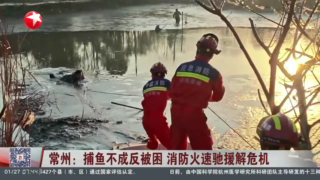 常州:捕鱼不成反被困 消防火速驰援解危机