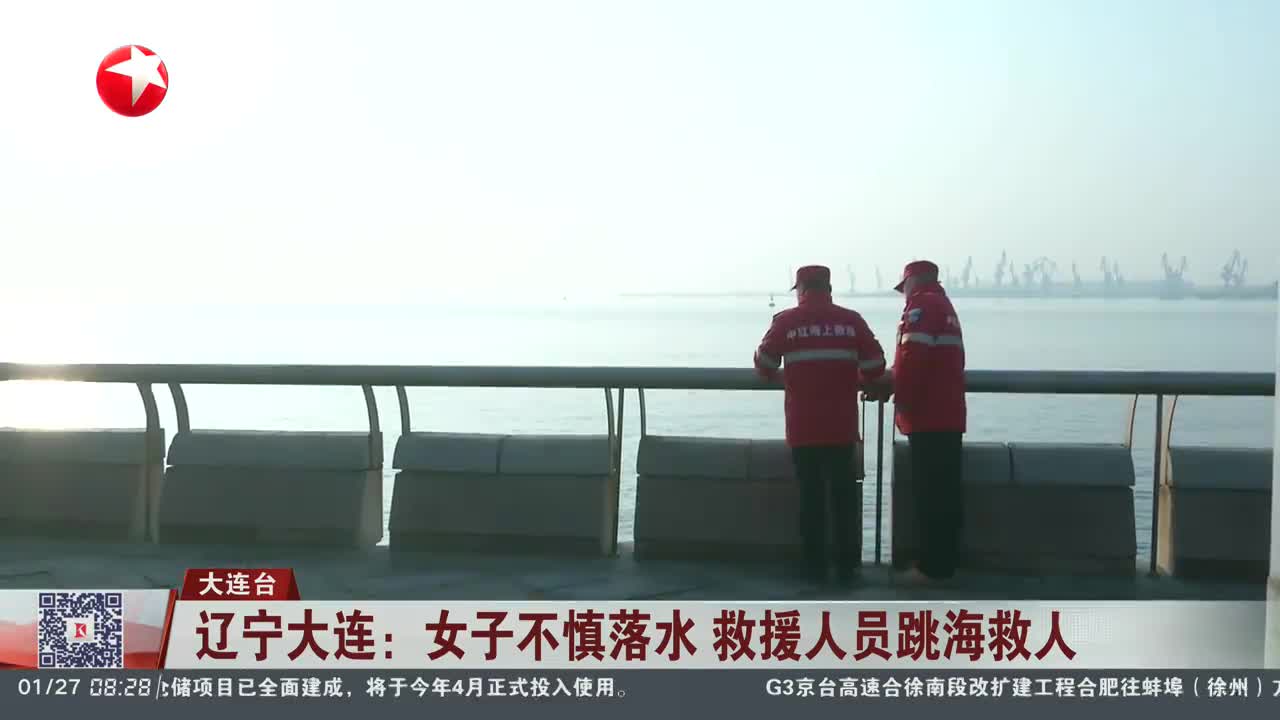 辽宁大连:女子不慎落水 救援人员跳海救人