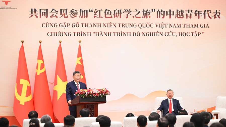 双方要同心协力,携手同行现代化道路。要加快发展战略对接,优先推进基础设施互联互通。要加强人工智能、半导体、物联网等新兴领域合作。中方欢迎更多越南优质产品进入中国市场。双方要继续加强旅游、文化、媒体、教育、卫生、体育等友好交流合作,促进两国人民相知相亲。我愿同你一道宣布启动2026-2027年“中越旅游合作年”。