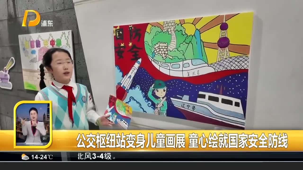 公交枢纽站变身儿童画展 童心绘就国家安全防线