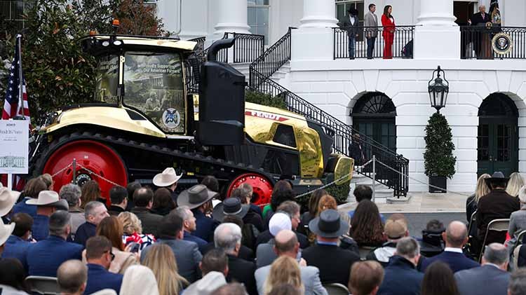特朗普演讲两次停下:金色的拖拉机是送我的吗?
