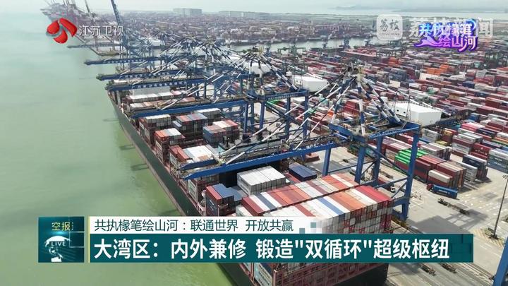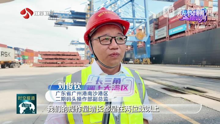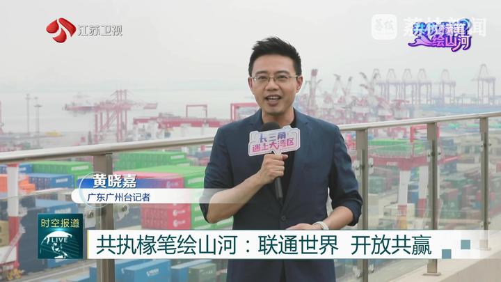 广东广州台记者黄晓嘉说:“我们将联动深圳、珠海两地媒体同行一起带大家感受大湾区的开放活力。此刻,我正站在粤港澳大湾区的地理几何中心——广州港南沙港区的码头。外贸箱量16年来首次反超内贸箱量,是今年这座大港的一件里程碑事件。‘经略腹地’与‘面向海洋’协同发力,真是妥妥的‘双循环’高手、大湾区超级接口,这身‘内外兼修’的功夫到底是如何练就的呢?”