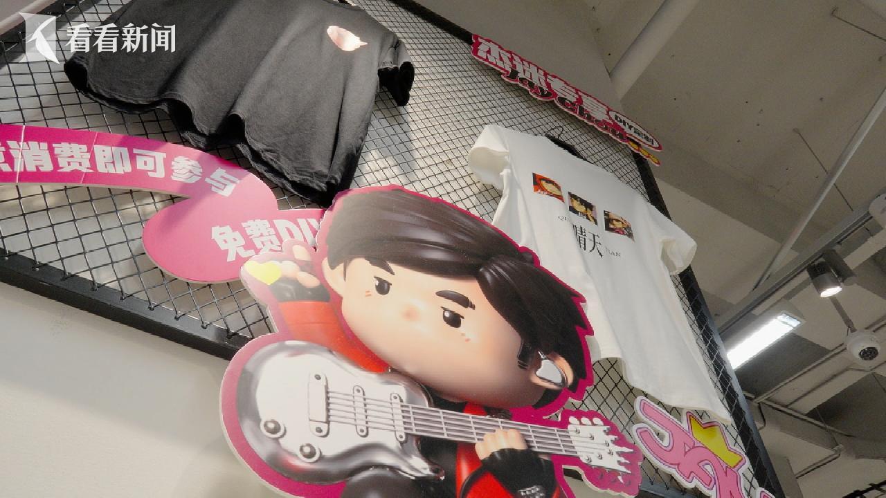 在毗邻上海体育场的飞洲国际广场,周杰伦的歌单循环播放,多家品牌提前进入“周董时间”。一家运动品牌在国庆期间便推出了“任意消费免费参与杰伦迷DIY定制”活动,顾客只需购买一件约200元的T恤,即可烫印Q版专辑封面、歌词等个性化图案。