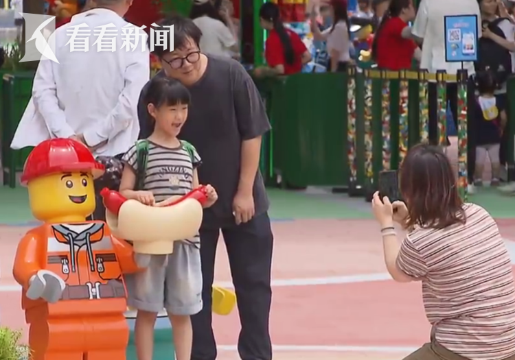 上午9点多,上海乐高乐园入口处已排起了队。既有亲子家庭,也有年轻游客,大家难掩兴奋,纷纷举起手机与眼前的乐高积木城堡合影。